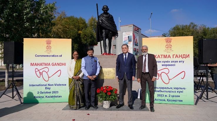 Bolat Nurgaliyev together with Ambassador of India to Kazakhstan Dr. T.V. Nagendra Prasad laid flowers at the Mahatma Gandhi Statue in the city square of Astana and made a speech marking international significance of spiritual heritage of the great son of the Indian people (the text of the speech is attached).