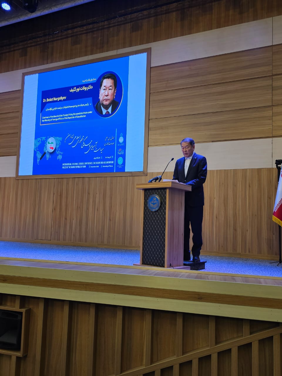 On December 19, 2023, Chairman of the FPRI Board Bolat Nurgaliyev spoke at the opening ceremony of the International Conference «Policy of the Islamic Republic of Iran towards Asia and Neighboring Countries» in Tehran.