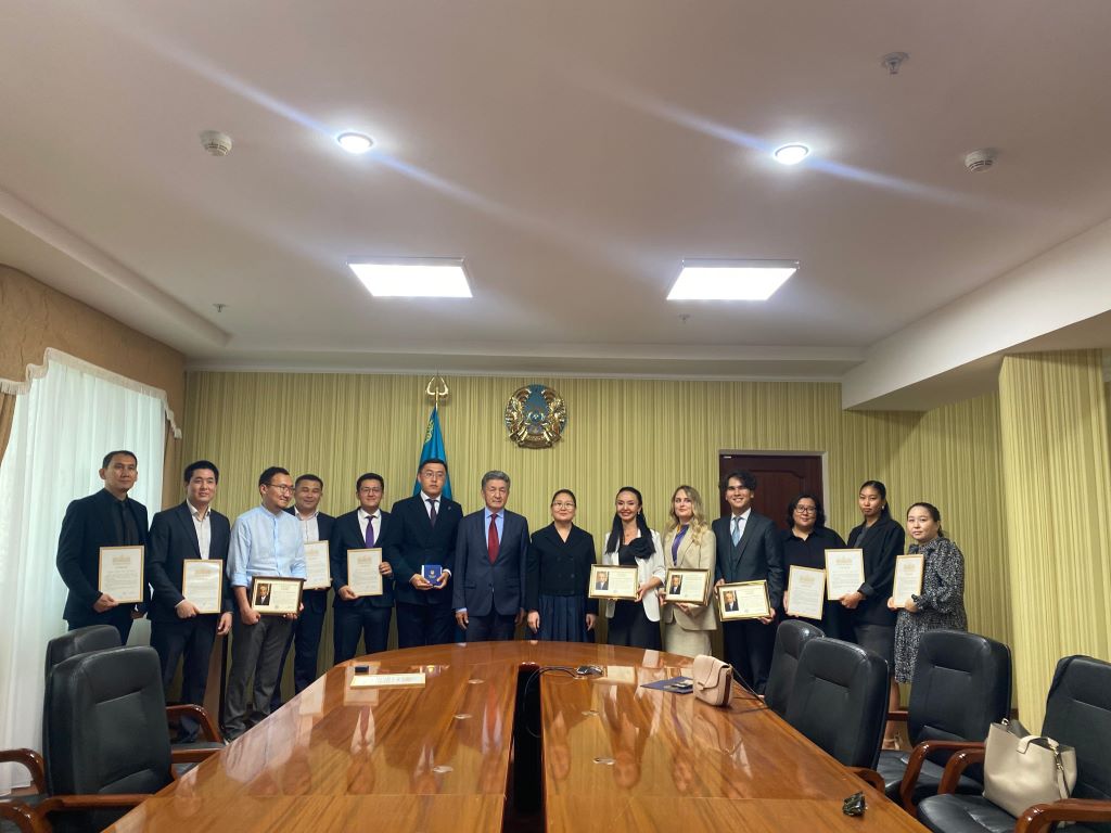 Deputy Chairman of the FPRI Board Amangeldy Tazhenov and Head of the Analysis and Forecasting Group Amir Bashbayev were rewarded letters of gratitude by Head of the Administration of the President of the Republic of Kazakhstan Aybek Dadebai and Assistant to the President of the Republic of Kazakhstan for Internal Policy and Communications Ruslan Zheldibai, for their active participation in the Shanghai Cooperation Organization Summit and comprehensive information coverage of the content of the event.