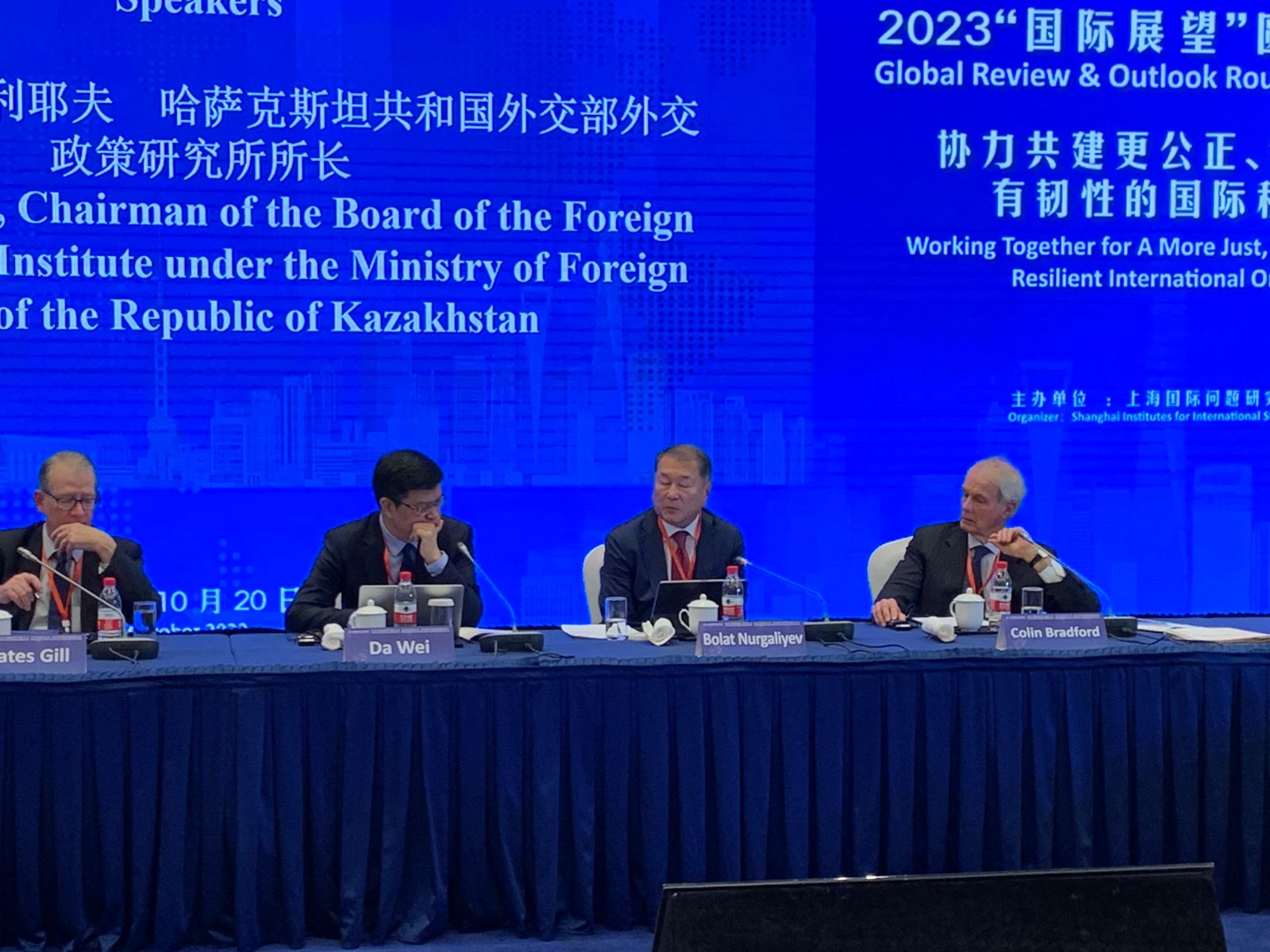 2023 жылғы 18-20 қазан аралығында Шанхайда (ҚХР) ССЗИ Басқарма Төрағасы Болат Нұрғалиев қауіпсіз, инклюзивті және орнықты әлемдік тәртіпті орнату мүддесінде халықаралық қауіпсіздік, өзекті тәуекелдерді азайту және мемлекетаралық ынтымақтастық саласындағы ағымдағы ахуалдың сын-қатерлері мәселелері бойынша «дөңгелек үстелге» қатысты. Іс-шараны Шанхай халықаралық зерттеулер академиясы ұйымдастырды және оған ҚХР, Ресей, АҚШ, Сингапур, Оңтүстік Африка және ГФР серіктестік аналитикалық құрылымдарының жетекші сарапшылары қатысты.