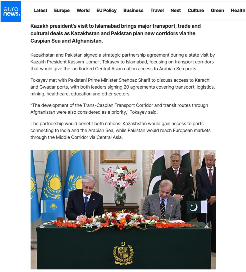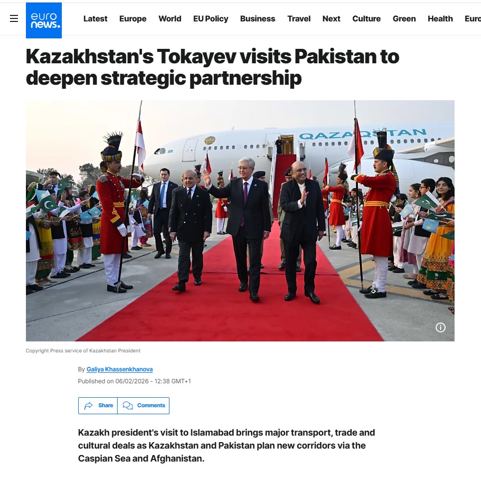 (Ссылка на интервью: https://www.euronews.com/2026/02/06/kazakhstans-tokayev-visits-pakistan-to-deepen-strategic-partnership ).